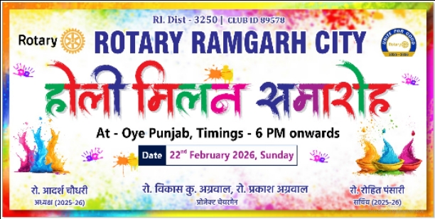 Rotary Ramgarh City celebrated Holi Milan at Oye Punjab Chutupalu e. . .