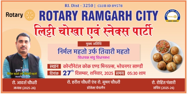 Rotary Ramgarh City Organised a Litti Chokha and Snacks and house o. . .
