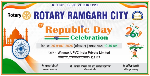 Rotary Ramgarh City celebrated Republic Day by hoisting the flag at. . .